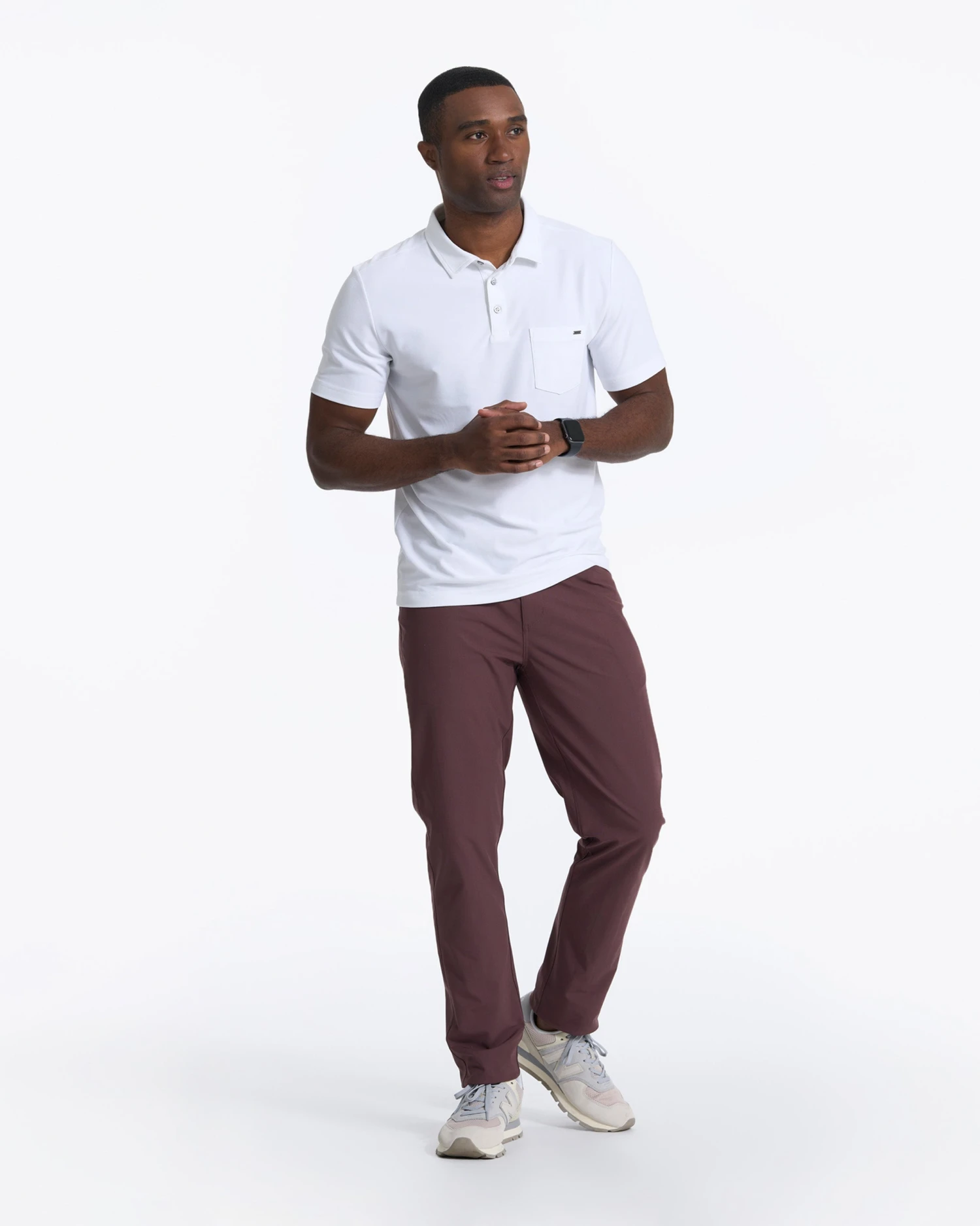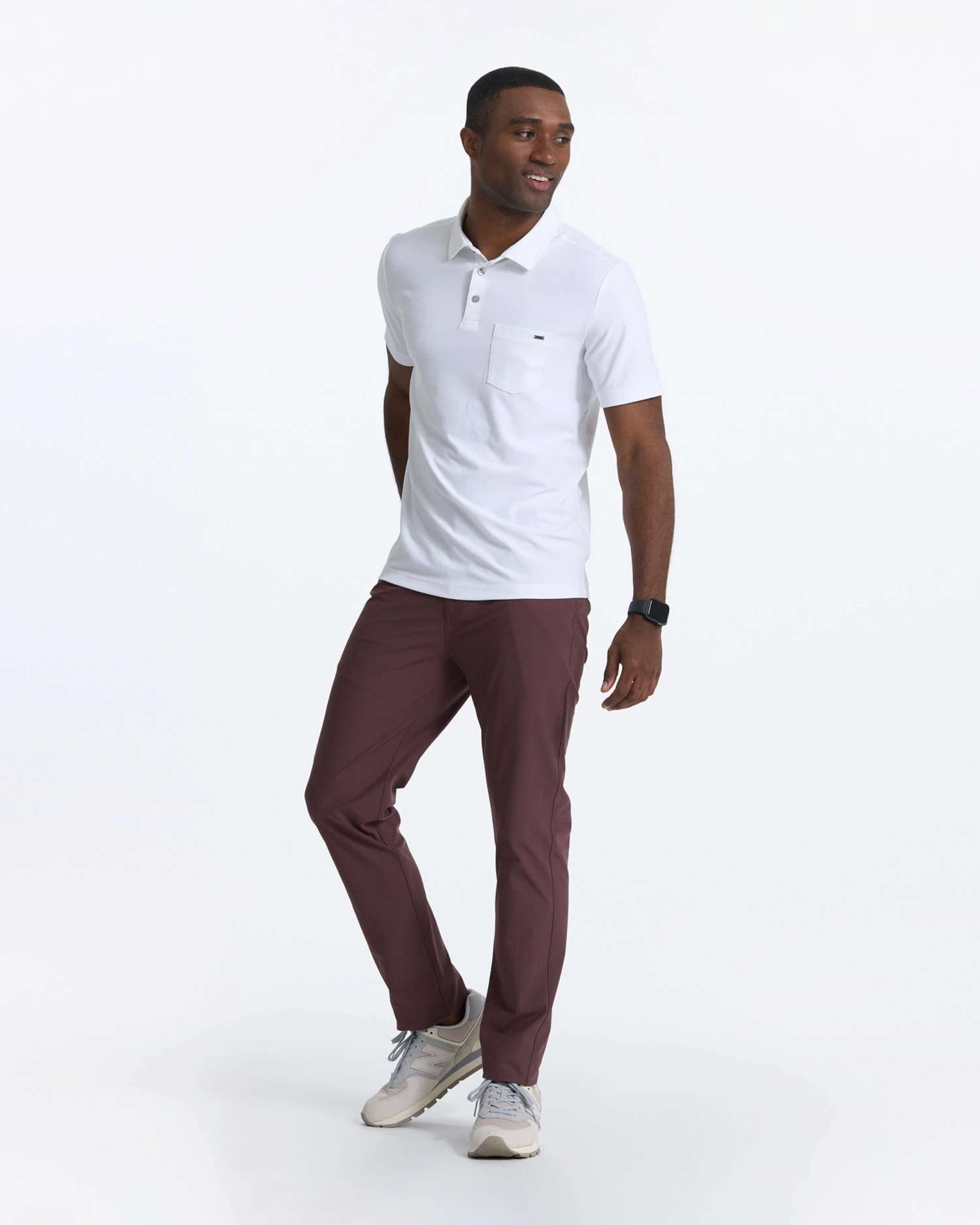 Made with 100% Performance and a slim-fit design, the Ace Polo is a token travel/commute piece with a self-collar, three-button placket and a chest pocket. Great for traveling and chilling.