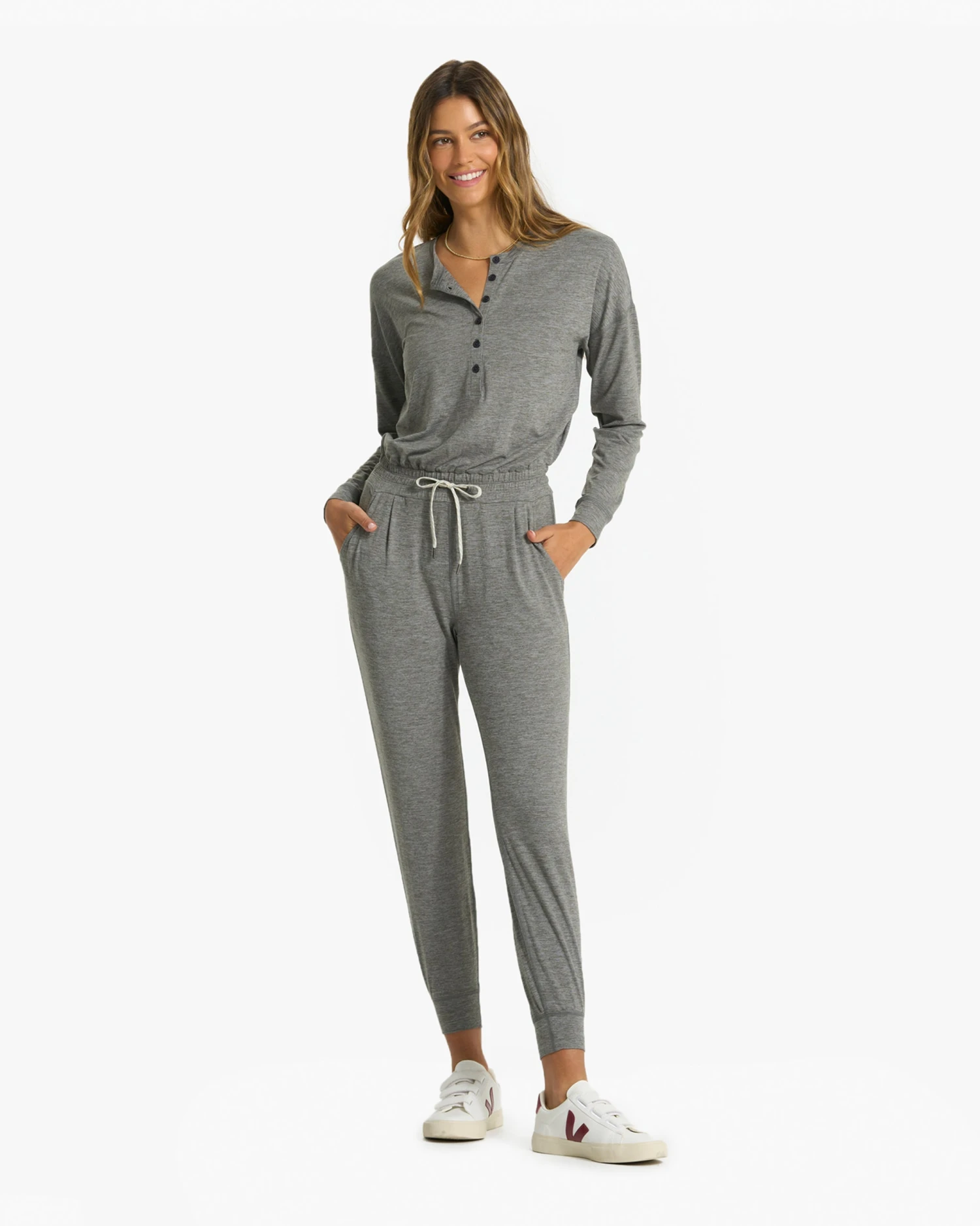 Lux Henley Jumpsuit | Heather Grey